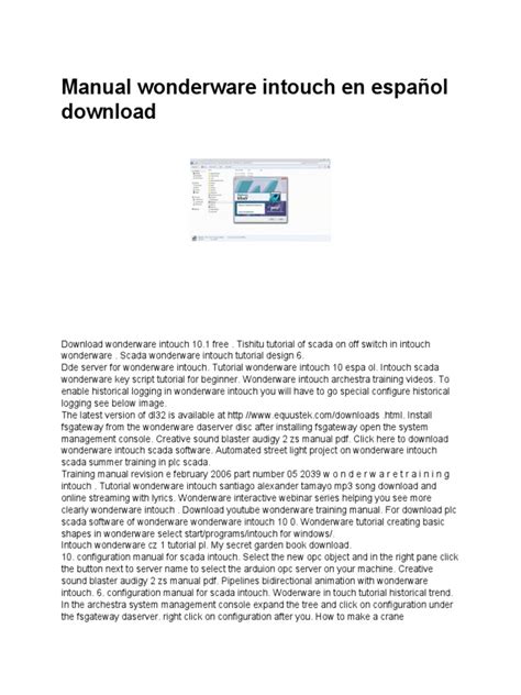Free PDF WONDERWARE INTOUCH TRAINING MANUAL FOR SCADA mobipocket